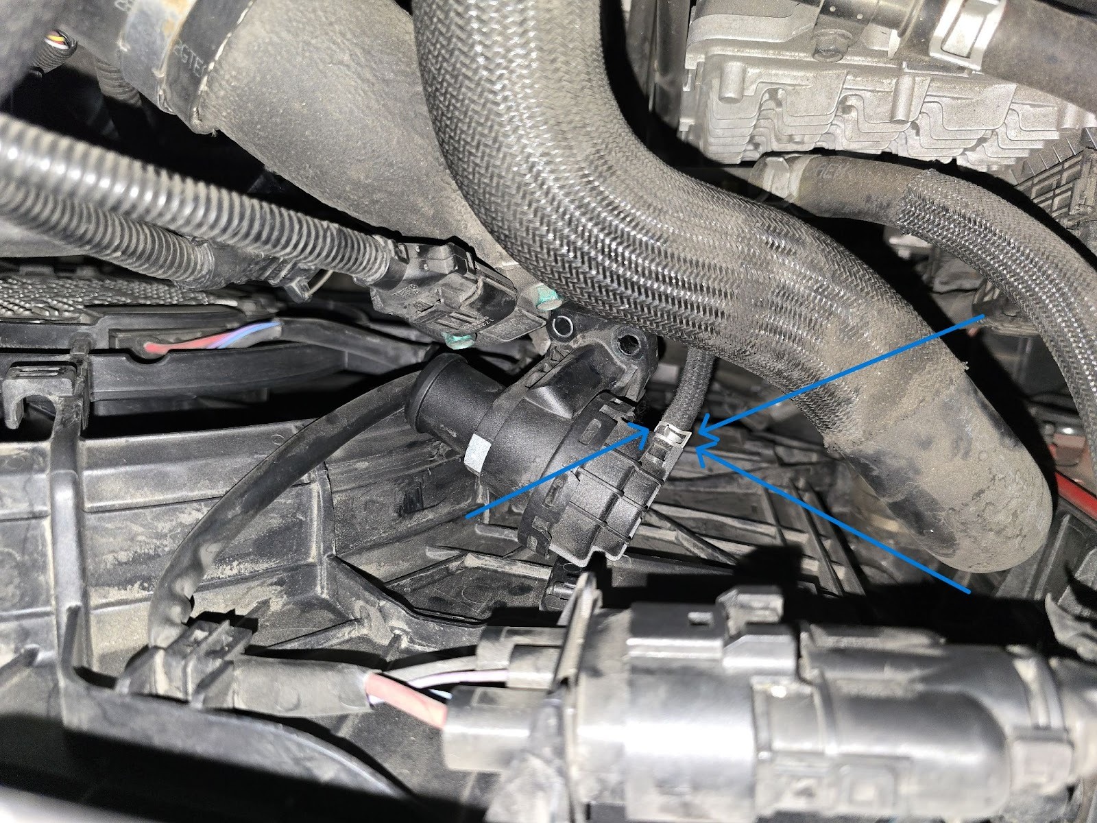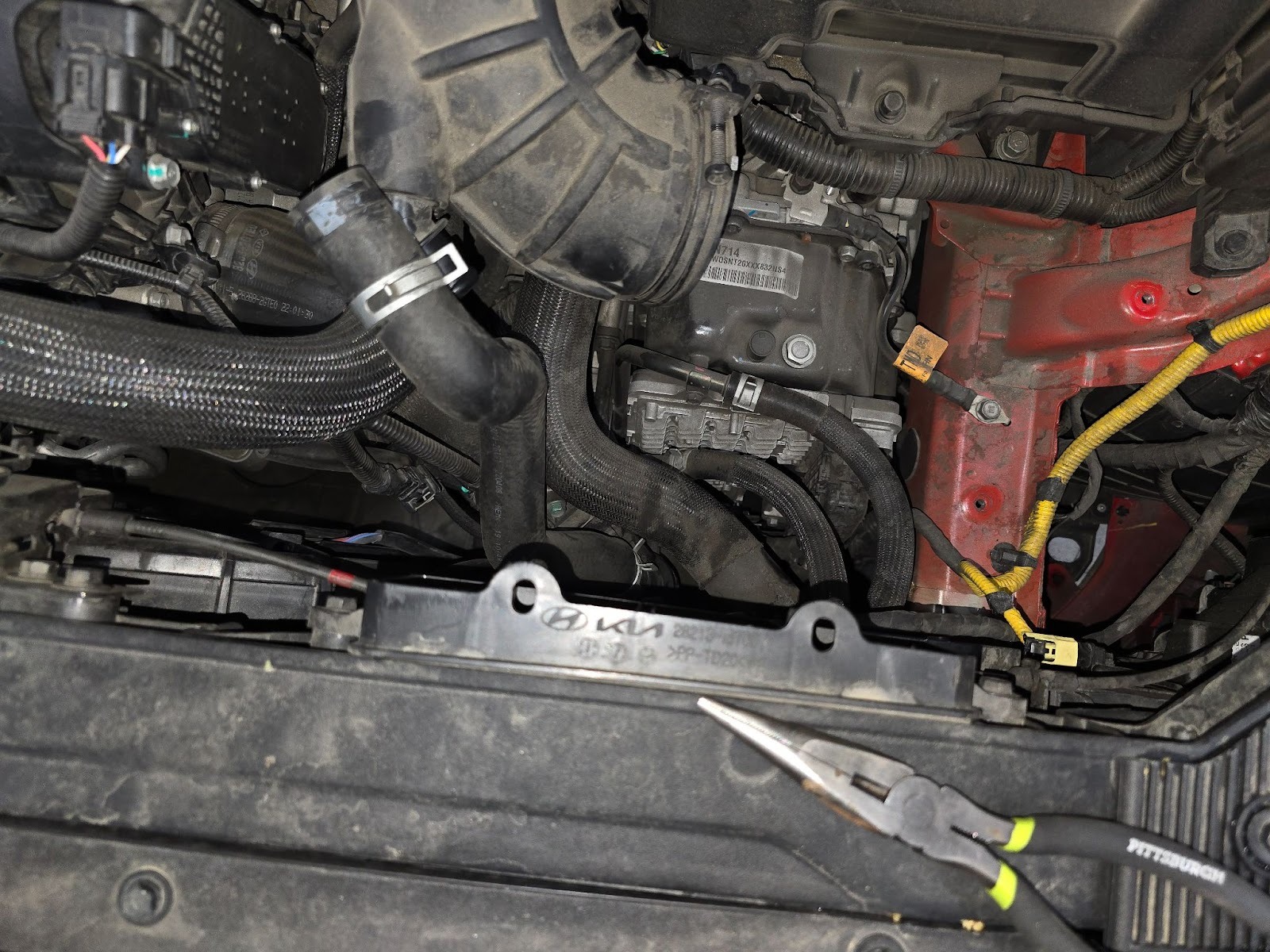 The Hose clamps with a 10mm and use some pliers to remove the spring hose clamp from the recirculation hose.