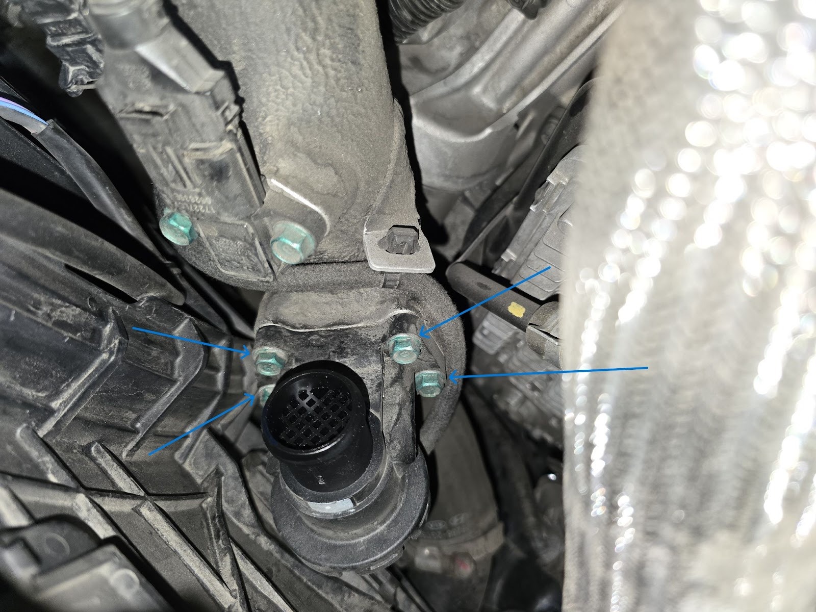 The OEM valve is located at the end of that hose, it can be removed with 4 x 10mm bolts. Turbosmart recommends that OEM parts are set aside and retained for safekeeping.