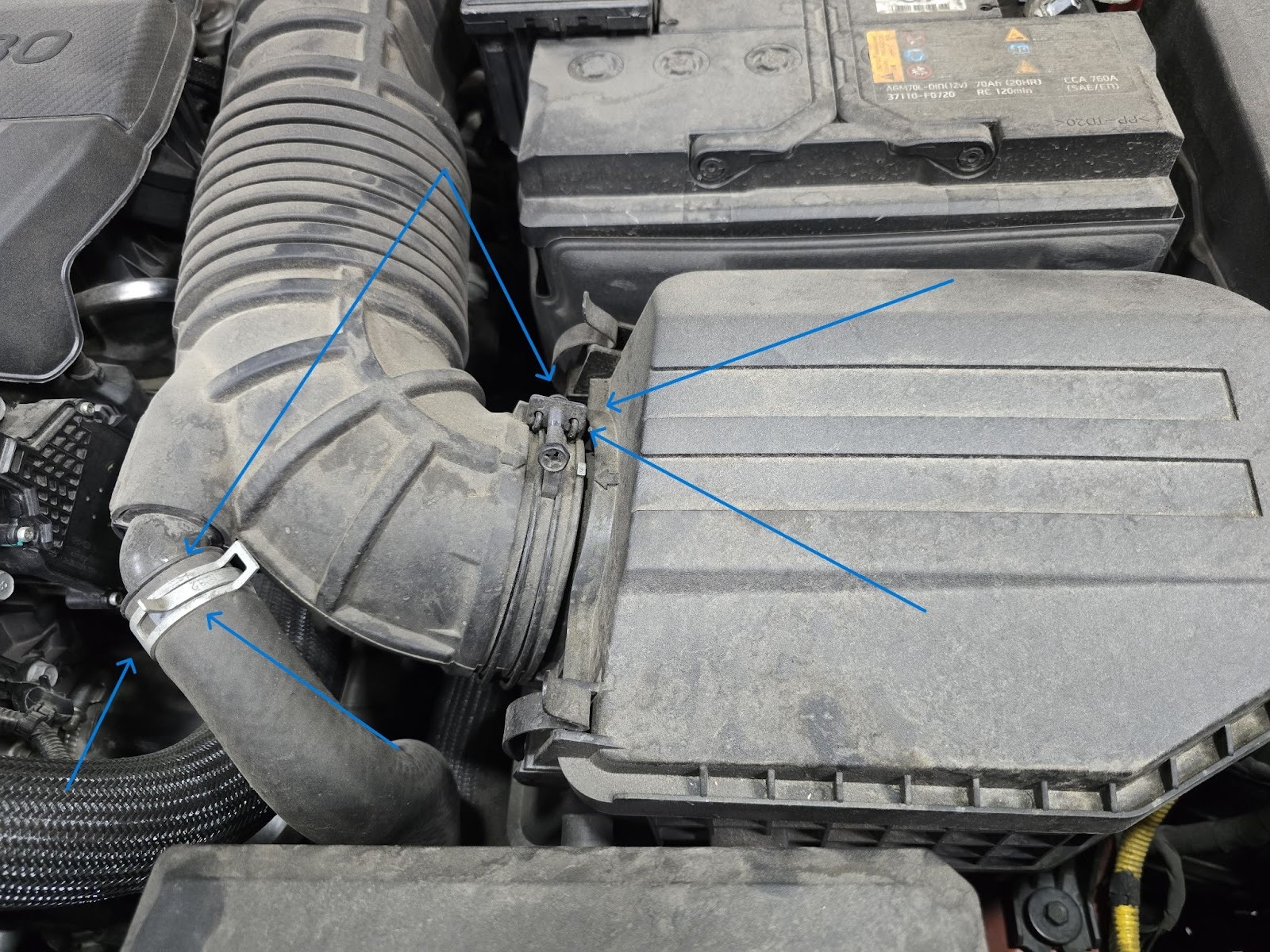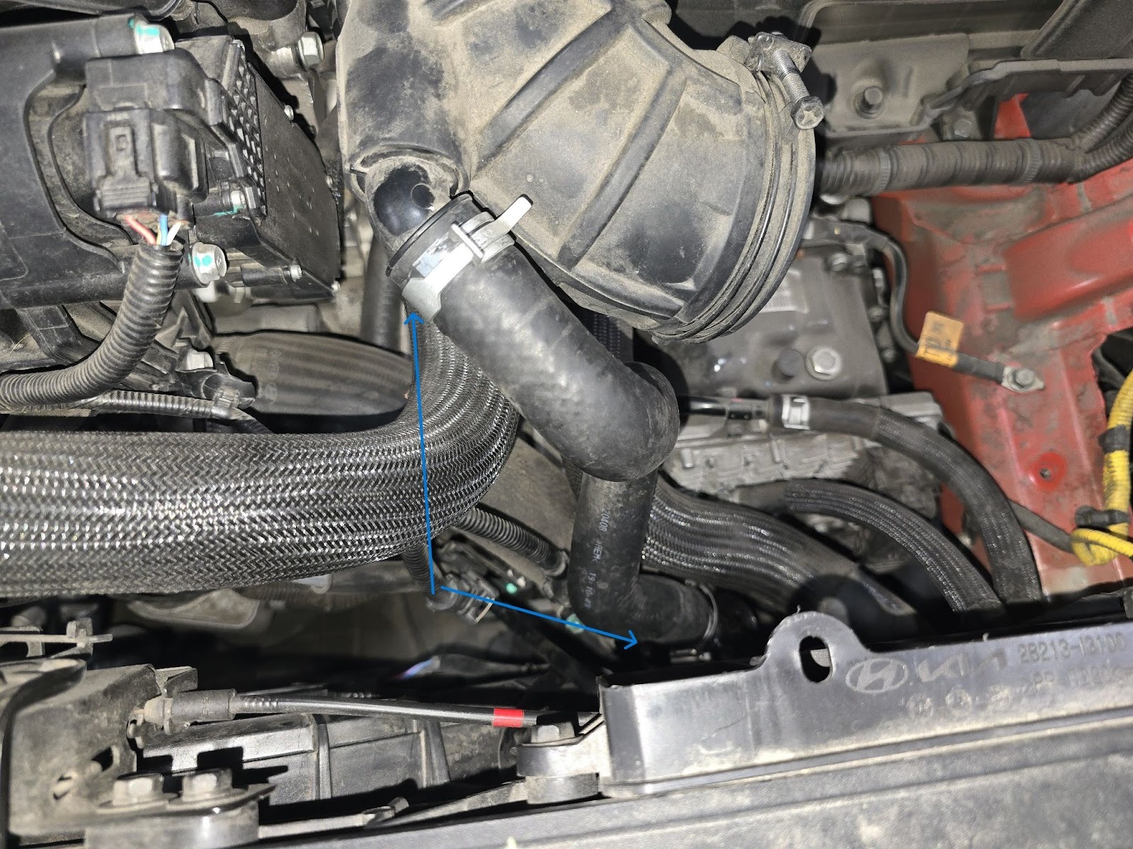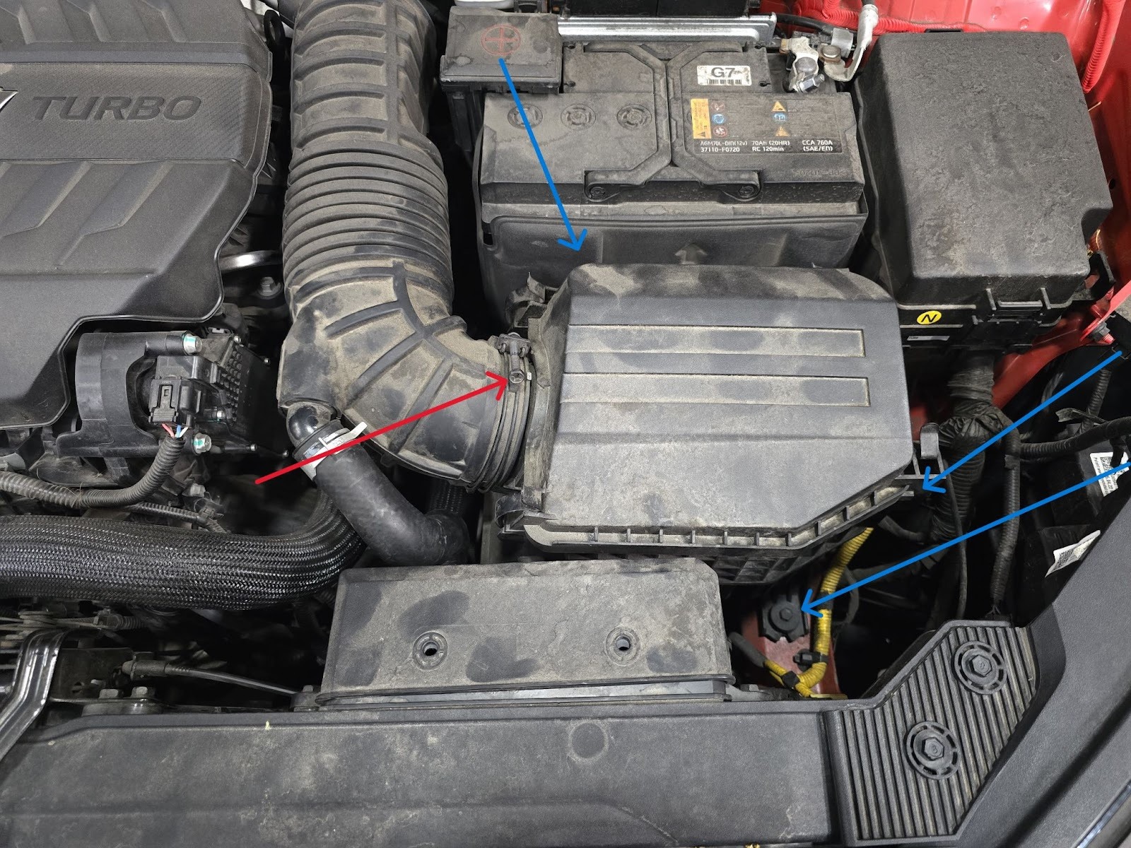Finalise airbox in to the car, 3 10mm bolts as well as the hose clamp need to be tightened up to finalise fitment onto car.