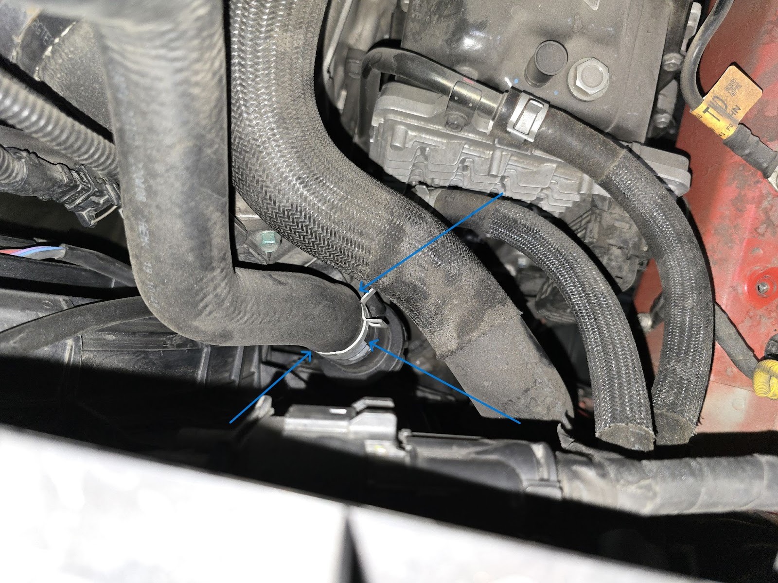 - Ensure the spring clamps are secured on silicon hoses and fittings.
