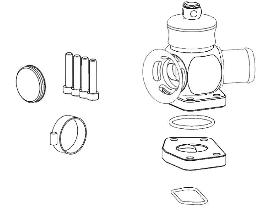 - Check the seal between the charge pipe flange and the BOV. Make sure the supplied O-Rings are installed properly and the BOV Flange is secured on the compressor cover flange with the 3 supplied screws.